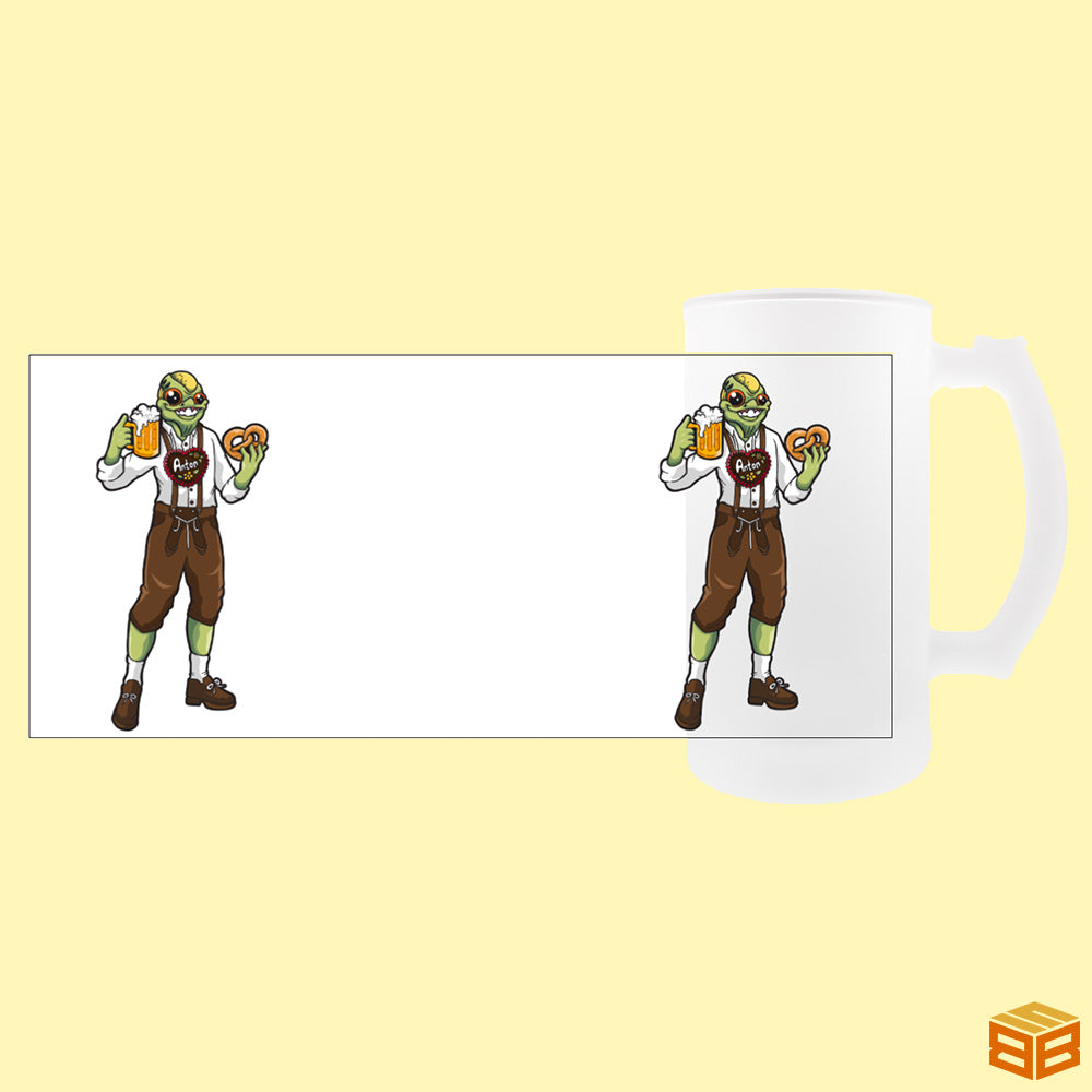 Er hat eine Höhe von etwa 150 mm, einem Durchmesser von 80 mm und einem Gewicht von 730 g, fasst etwa 470 ml. Seine satinierte Außenseite eignet sich ideal für Sublimationsdruck und macht ihn zum perfekten Geschenk für Bierenthusiasten. Handwäsche wird empfohlen.